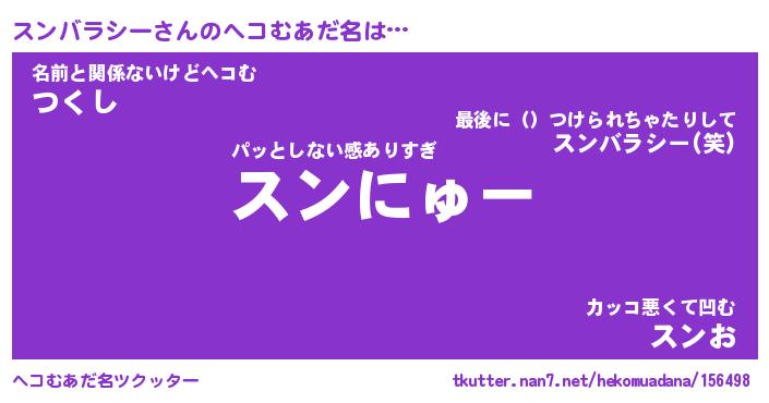 | 男性向けラノベタイトル風あだ名 | 『スンバラシーの憂鬱』 |