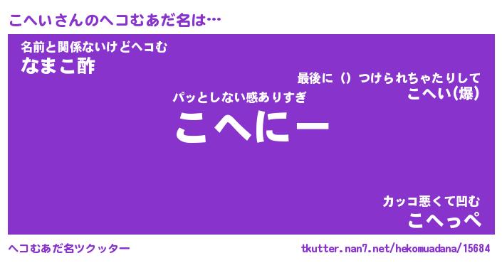 | 男性向けラノベタイトル風あだ名 | 『こへいの憂鬱』 |