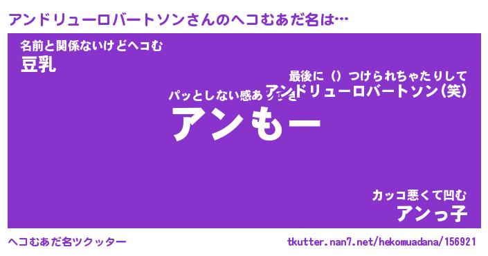 | 男性向けラノベタイトル風あだ名 | 『アンドリューロバートソンの憂鬱』 |