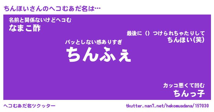 | ファンタジー風あだ名 | 『チンフェル』『エターナルチンホイー』 |