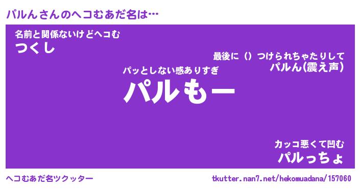 | ヒーロー風カッコイイあだ名 | 『スーパーパルン』『ウルトラパルんマン』 |