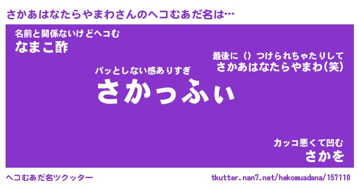 | 伝説のあだ名 | 『伝説のスナイパーさかあはなたらやまわ』 |