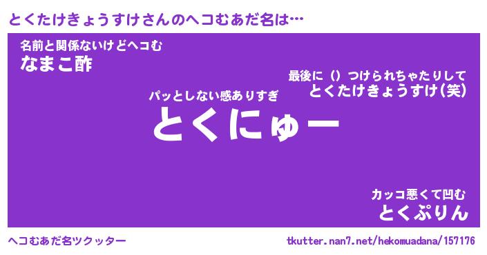 | 男性向けラノベタイトル風あだ名 | 『とくたけきょうすけの憂鬱』 |