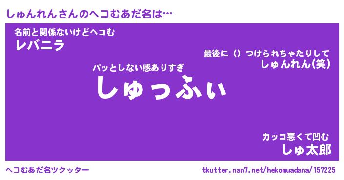 | 2回繰り返すあだ名 | 『しゅしゅ』『ししゅゅ』『なあなあ』 |