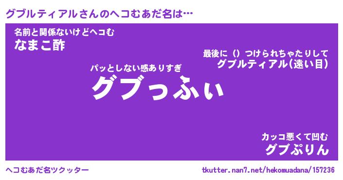 | 恥ずかしいあだ名 | 『プリティーグブルティアル』『グブちん』 |