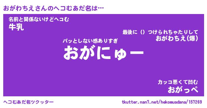 | ポケモン風あだ名 | 『オガチュウ』『オガワダネ』 |