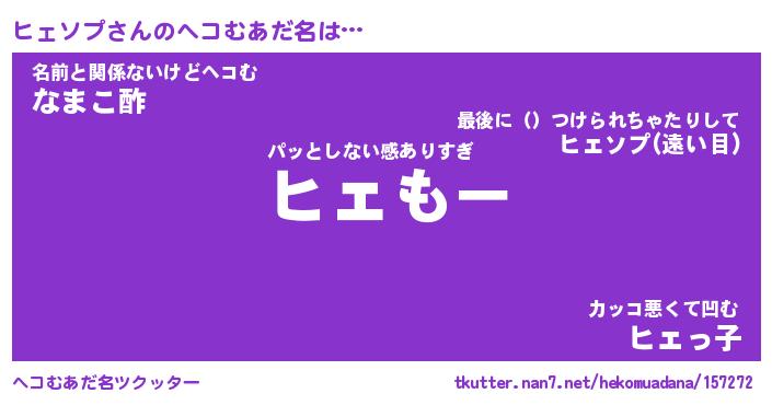 | 意味不明あだ名 | 『ペロリンヒェソプ』『永久保存ヒェソプ』 |