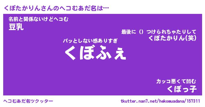 | 意味不明あだ名 | 『ペロリンくぼたかりん』 |