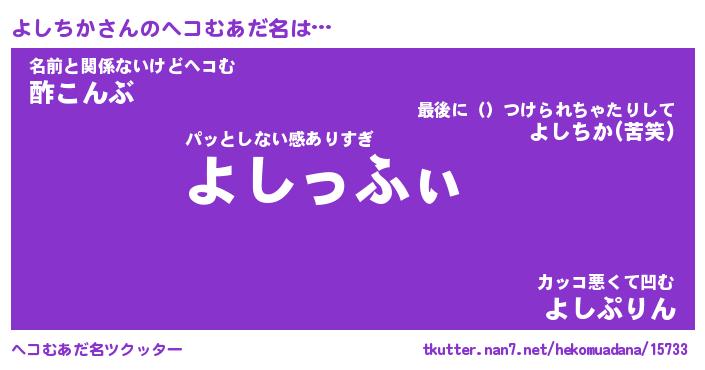| 意味不明あだ名 | 『ペロリンよしちか』『永久保存よしちか』 |
