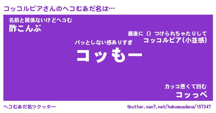| 男性向けラノベタイトル風あだ名 | 『コッコルピアの憂鬱』 |