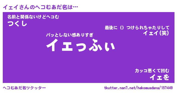 | ファンタジー風あだ名 | 『イェフェル』『エターナルイェイー』 |