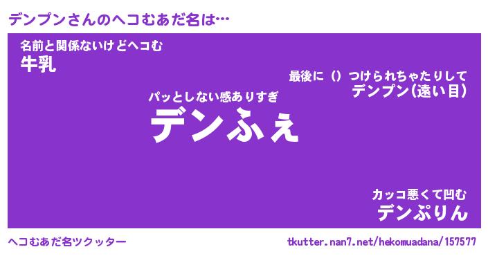 | ファンタジー風あだ名 | 『デンフェル』『エターナルデンプンー』 |
