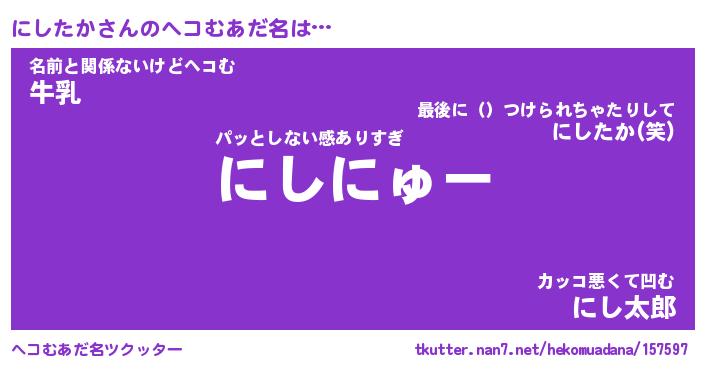 | ピコ太郎風あだ名 | 『ニコ史郎』『ピニ一郎』『ニシ一郎』 |