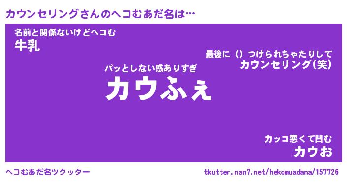 | ファンタジー風あだ名 | 『カウフェル』『ファントムカウス』 |