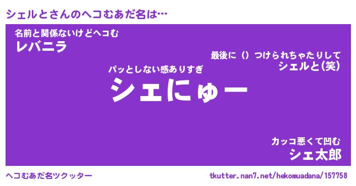| ポケモン風あだ名 | 『シェチュウ』『シェルダネ』 |