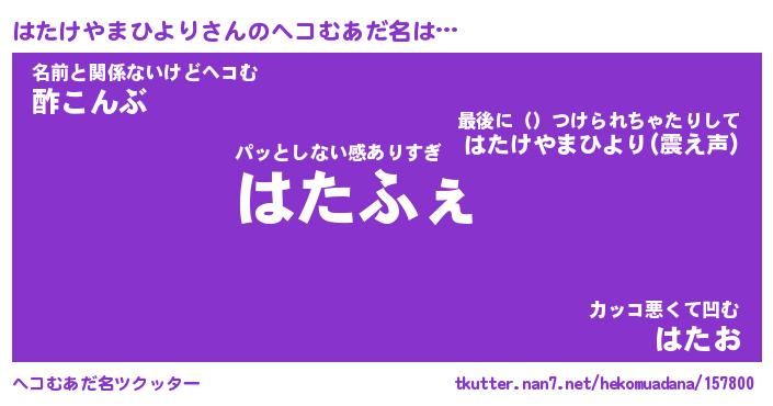 | 意味不明あだ名 | 『ペロリンはたけやまひより』 |