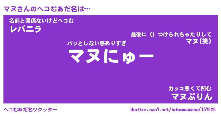 | 男性向けラノベタイトル風あだ名 | 『マヌの憂鬱』『ノーゲーム・ノーマヌ』 |