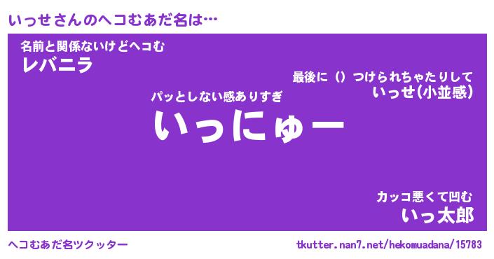 | ポケモン風あだ名 | 『イッチュウ』『イッセダネ』 |