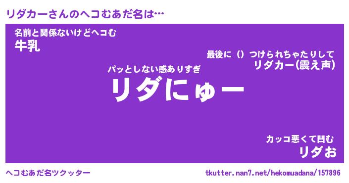 | 意味不明あだ名 | 『ペロリンリダカー』『永久保存リダカー』 |