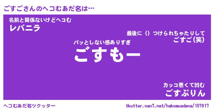 | 意味不明あだ名 | 『ペロリンごすご』『ごすごフォーエバー』 |