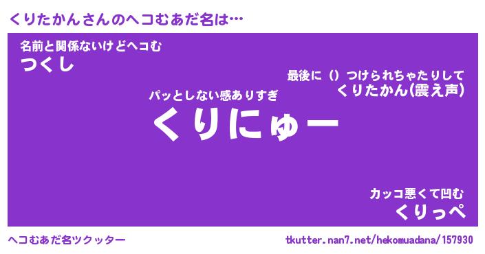 | 2回繰り返すあだ名 | 『くりくり』『くくりり』『あんあん』 |