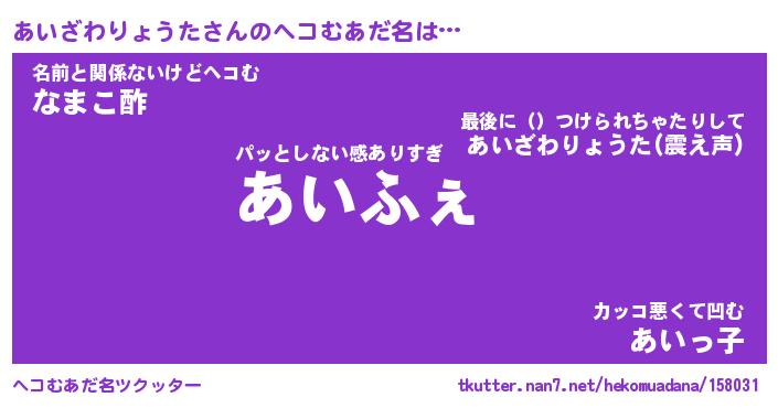 | 恥ずかしいあだ名 | 『プリティーあいざわりょうた』 |