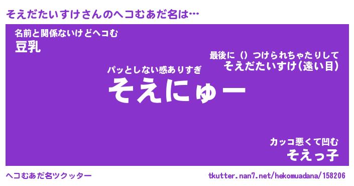 | ポケモン風あだ名 | 『ソエチュウ』『ソエダダネ』 |