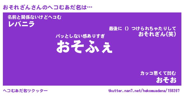 | ファンタジー風あだ名 | 『オソフェル』『エターナルオソレザンー』 |