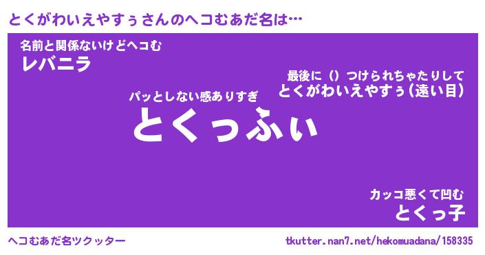 | 2回繰り返すあだ名 | 『とくとく』『ととくく』『きこきこ』 |
