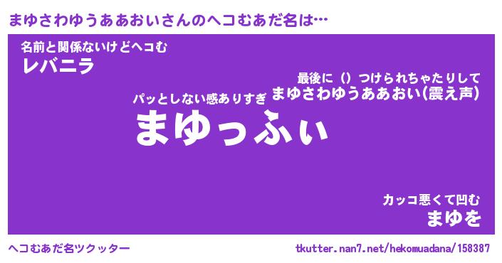 | 伝説のあだ名 | 『伝説のスナイパーまゆさわゆうああおい』 |