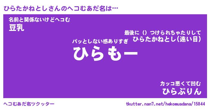 | 意味不明あだ名 | 『ペロリンひらたかねとし』 |
