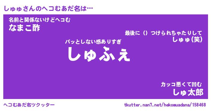 | ヒーロー風カッコイイあだ名 | 『スーパーシュュ』『ウルトラしゅゅマン』 |