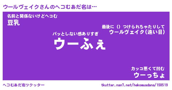 | 男性向けラノベタイトル風あだ名 | 『ウールヴェイクの憂鬱』 |