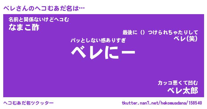 | 2回繰り返すあだ名 | 『ベレベレ』『ベベレレ』『こつこつ』 |