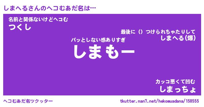 | 男性向けラノベタイトル風あだ名 | 『しまへるの憂鬱』 |