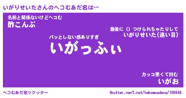 | 胡散臭い通販商品みたいなあだ名 | 『モテモテ間違いなし霊験あらたかなお札…その名も「いがりせいた」』 |
