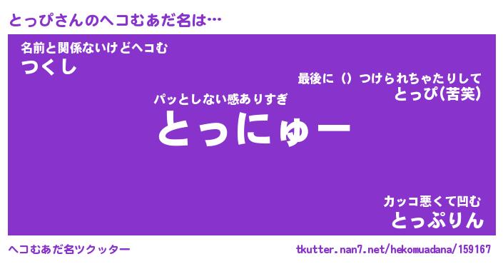 | ファンタジー風あだ名 | 『トッフェル』『エターナルトッピー』 |
