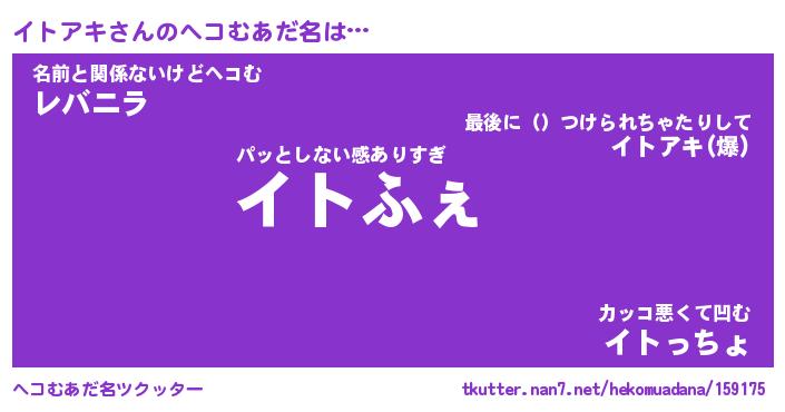 | 意味不明あだ名 | 『ペロリンイトアキ』『永久保存イトアキ』 |