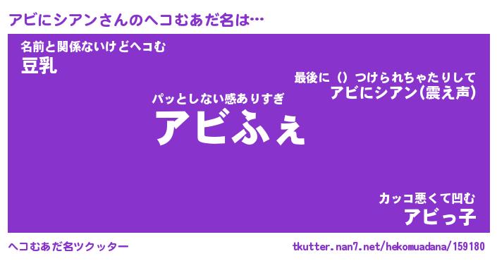 | 男性向けラノベタイトル風あだ名 | 『アビにシアンの憂鬱』 |