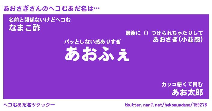 | ファンタジー風あだ名 | 『アオフェル』『エターナルアオサギー』 |