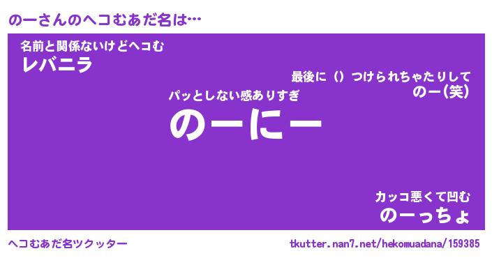 | 男性向けラノベタイトル風あだ名 | 『のーの憂鬱』『ノーゲーム・ノーノー』 |
