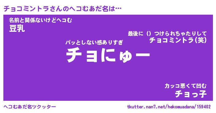 | ヒーロー風カッコイイあだ名 | 『スーパーチョコミントラ』 |