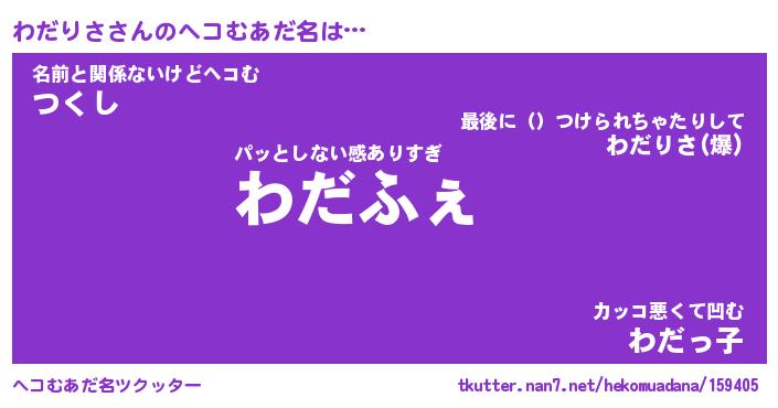 | ファンタジー風あだ名 | 『ワダフェル』『エターナルワダリサー』 |