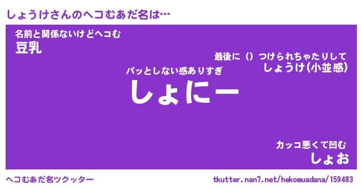 | 意味不明あだ名 | 『ペロリンしょうけ』『永久保存しょうけ』 |