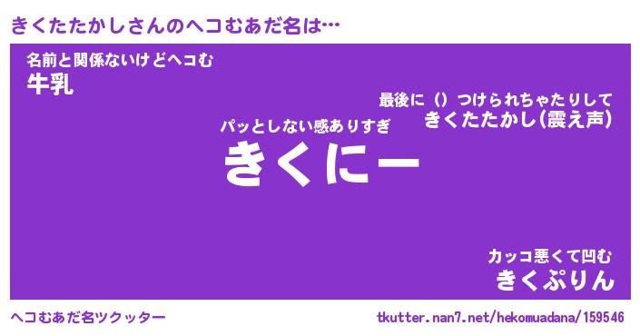 | ヒーロー風カッコイイあだ名 | 『スーパーキクタタカシ』『天弓騎士キク』 |