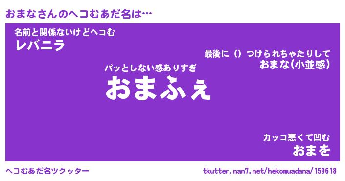 | ヒーロー風カッコイイあだ名 | 『スーパーオマナ』『ウルトラおまなマン』 |