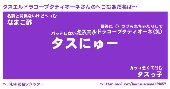 | 男性向けラノベタイトル風あだ名 | 『タスエルドラコープタティオーネの憂鬱』 |