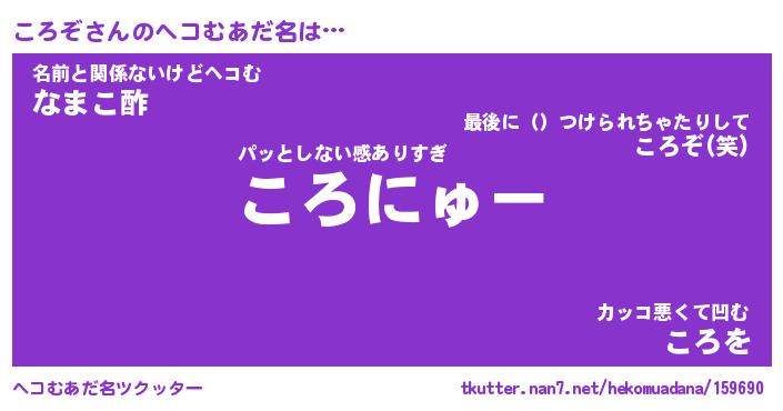 | ファンタジー風あだ名 | 『コロフェル』『エターナルコロゾー』 |