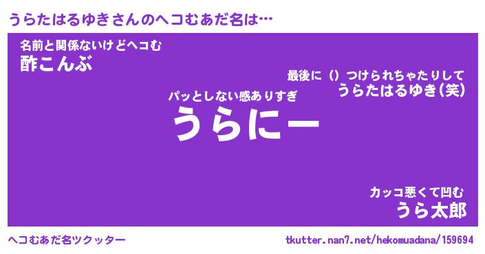 | 意味不明あだ名 | 『ペロリンうらたはるゆき』 |