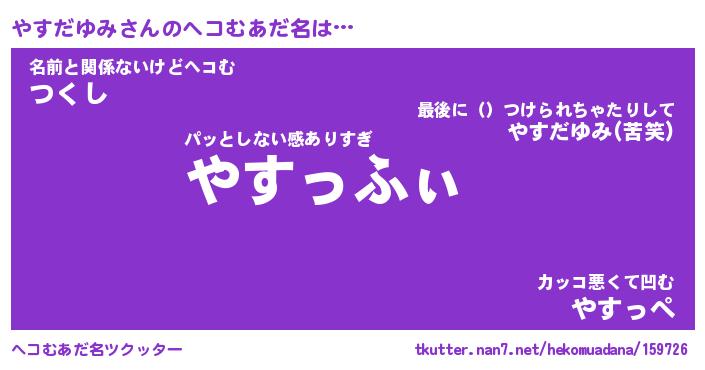 | ヒーロー風カッコイイあだ名 | 『スーパーヤスダユミ』『暗黒騎士ヤス』 |
